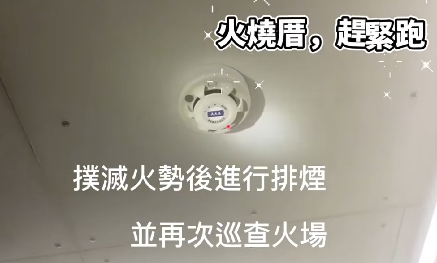 🔔 第二功臣:安裝的火災警報器! 警報器馬上作動發出警報聲,並連動大樓火警授信總機,讓現場人員、周邊鄰居都能立刻察覺異常,為搶救爭取黃金時間!